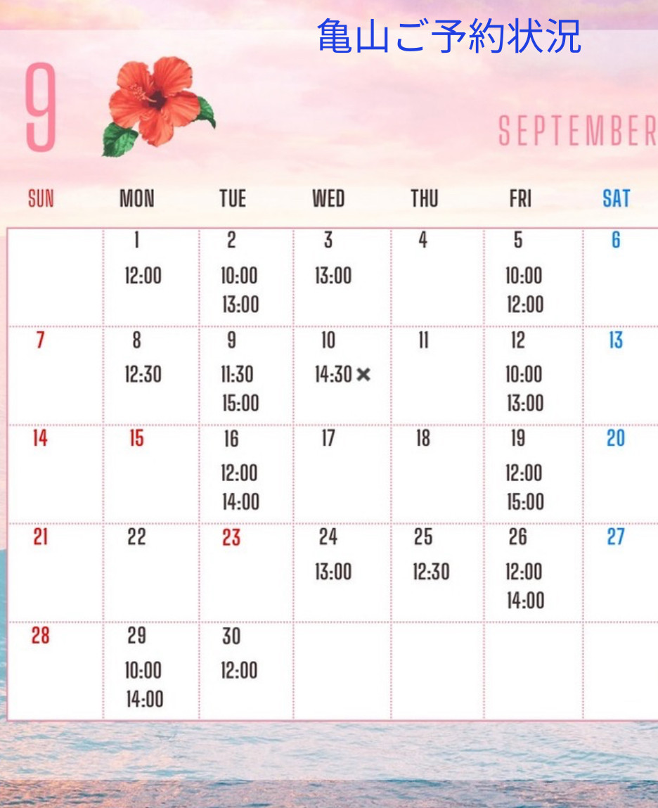 8月23日現在の9月のご予約状況です!