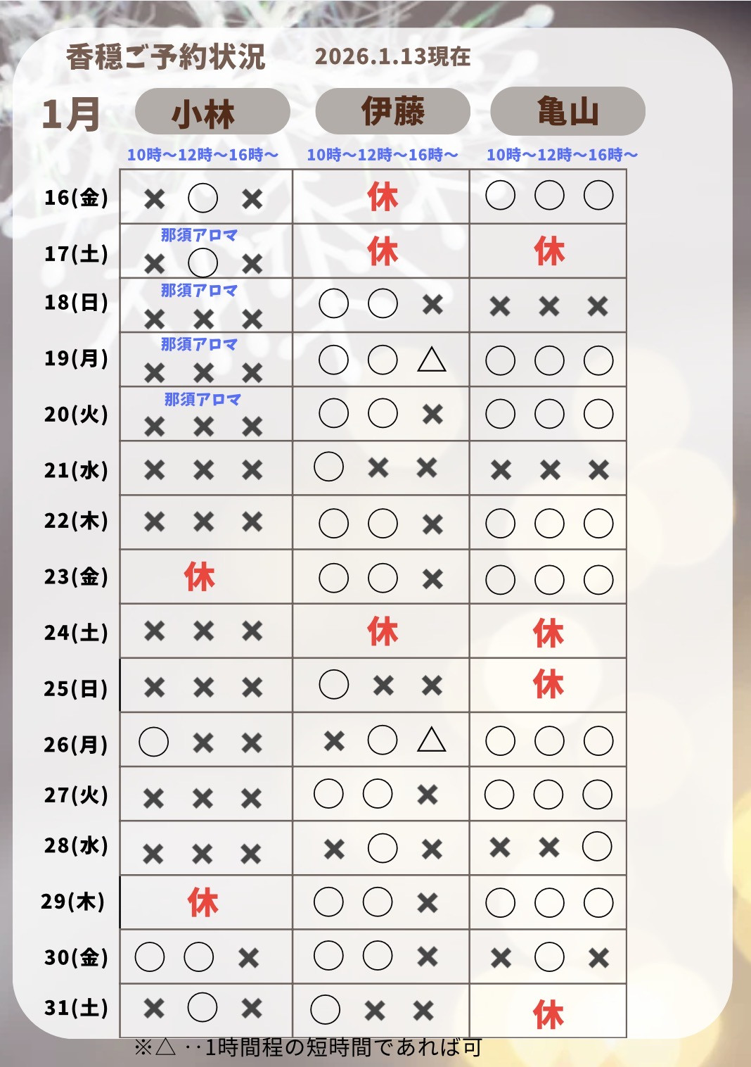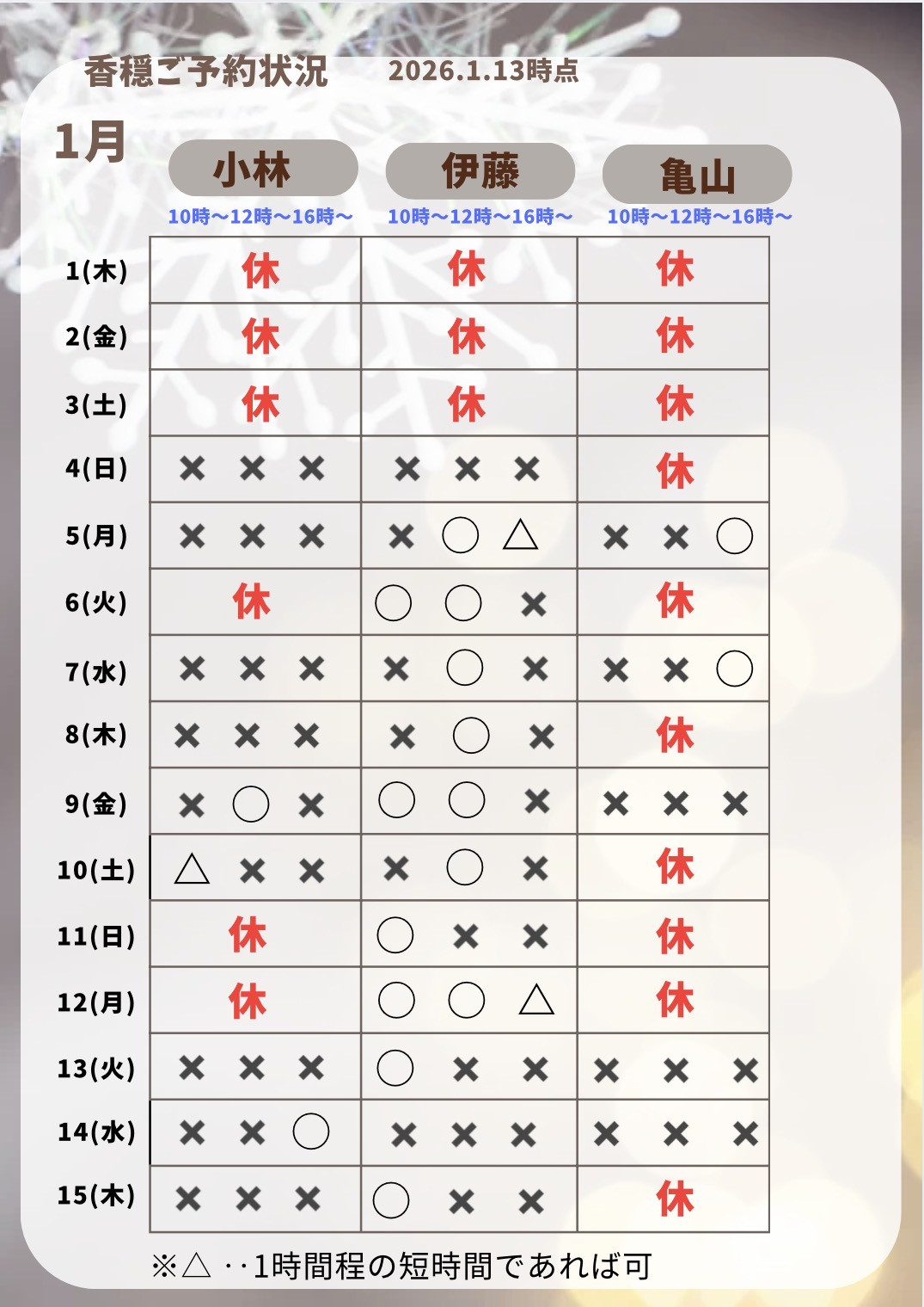 15日(木)10:00 →ご予約いただきました!ありがとうございます😌