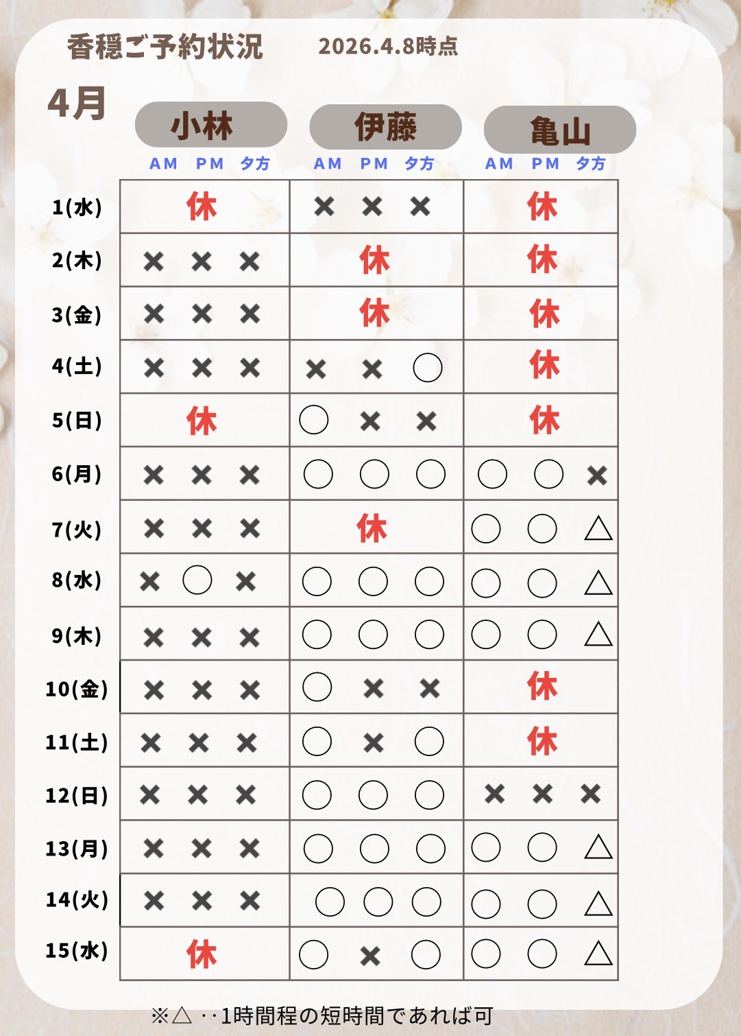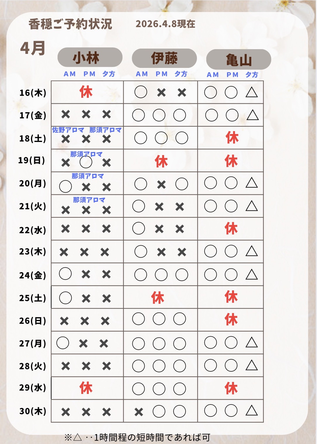 4月もどうぞよろしくお願い致します😊