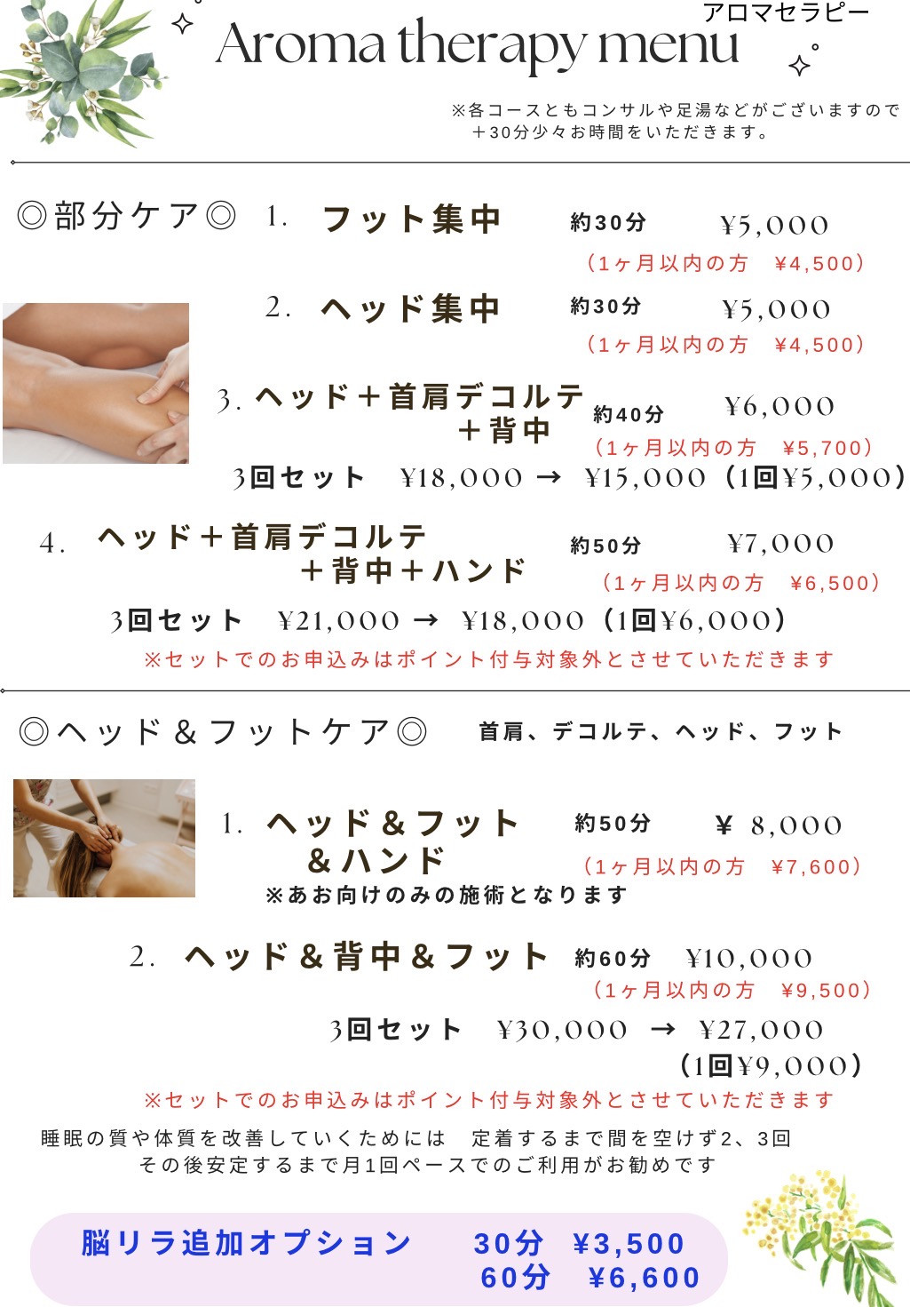 🌷アロマセラピーメニュー🌷